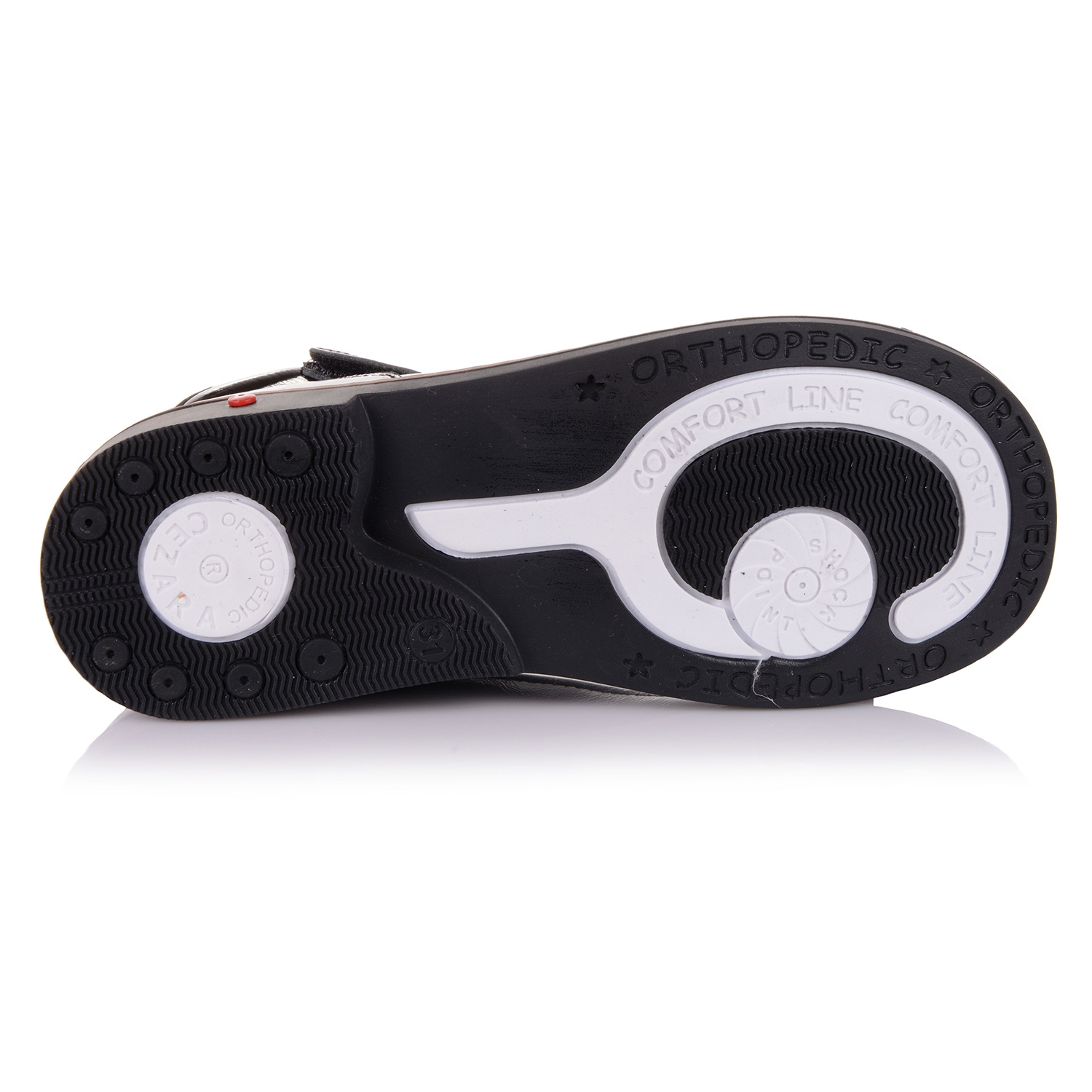 Модные ортопедические туфли из натуральной кожи черного цвета, станут идеальным дополнением к образу вашей модницы! Внутренняя часть выполнена в бежевой коже, внешняя часть- из натуральной лаковой кожи. Удобная фиксация на липучку позволяет подобрать туфли на ногу разной полноты и высоты свода. Каблук Томаса с удлиненным внутренним краем обеспечит правильную постановку ноги. Анатомическая стелька с супинатором поддержит свод стопы и поспособствует здоровому развитию мышц. О фиксации голенища и щиколотки позаботятся укрепленные берцы и жесткий задник. А хрупкие суставы будут защищены от чрезмерных нагрузок благодаря амортизационной вставке. Одевая такую пару обуви, Ваш ребенок будет чувствовать себя комфортно и эксклюзивно. Соответствие размера: большемерят (возьмите на размер меньше).