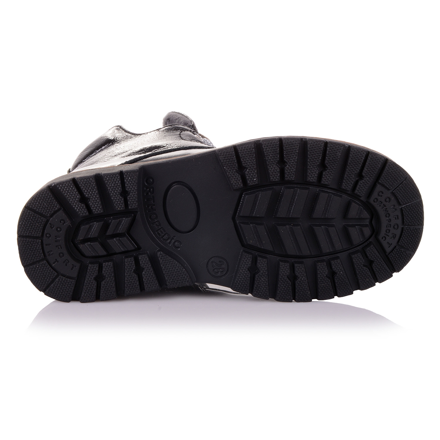 Шикарные и удобные ортопедические демисезонные ботинки на девочку- идеальны для города! Снаружи ботинки выполнены из натуральной кожи черного цвета, внутри- плотная мягкая байка. Надевать такие ботинки - секундное дело, ведь помимо шнурков в них есть ещё и молния сбоку. Каблук Томаса с удлиненным внутренним краем обеспечит правильную постановку ноги. Анатомическая стелька с супинатором поддержит свод стопы и поспособствует здоровому развитию мышц. О фиксации голенища и щиколотки позаботятся укрепленные берцы и жесткий задник. А хрупкие суставы будут защищены от чрезмерных нагрузок благодаря амортизационной вставке. Не отказывайте своему сокровищу носить правильную ортопедическую обувь класса премиум+.
