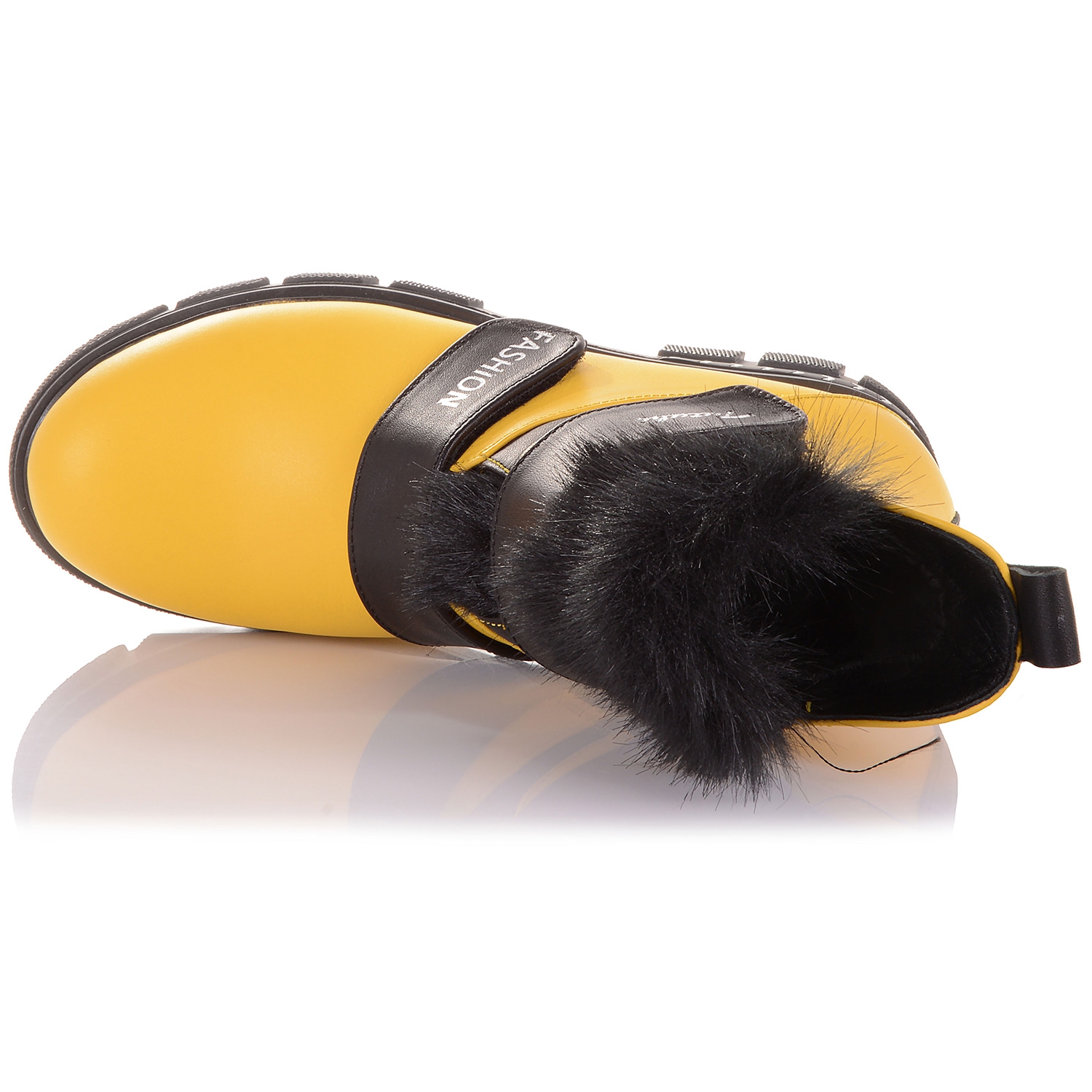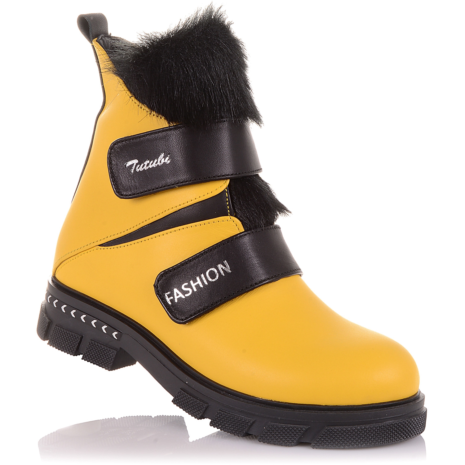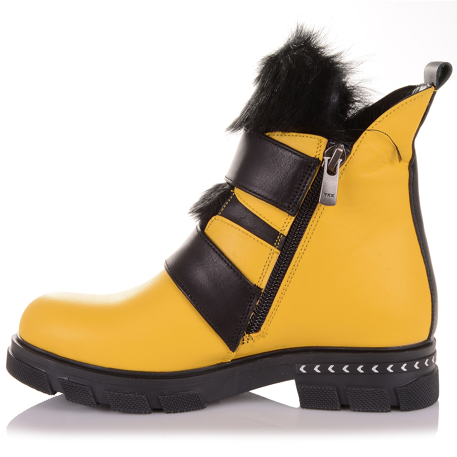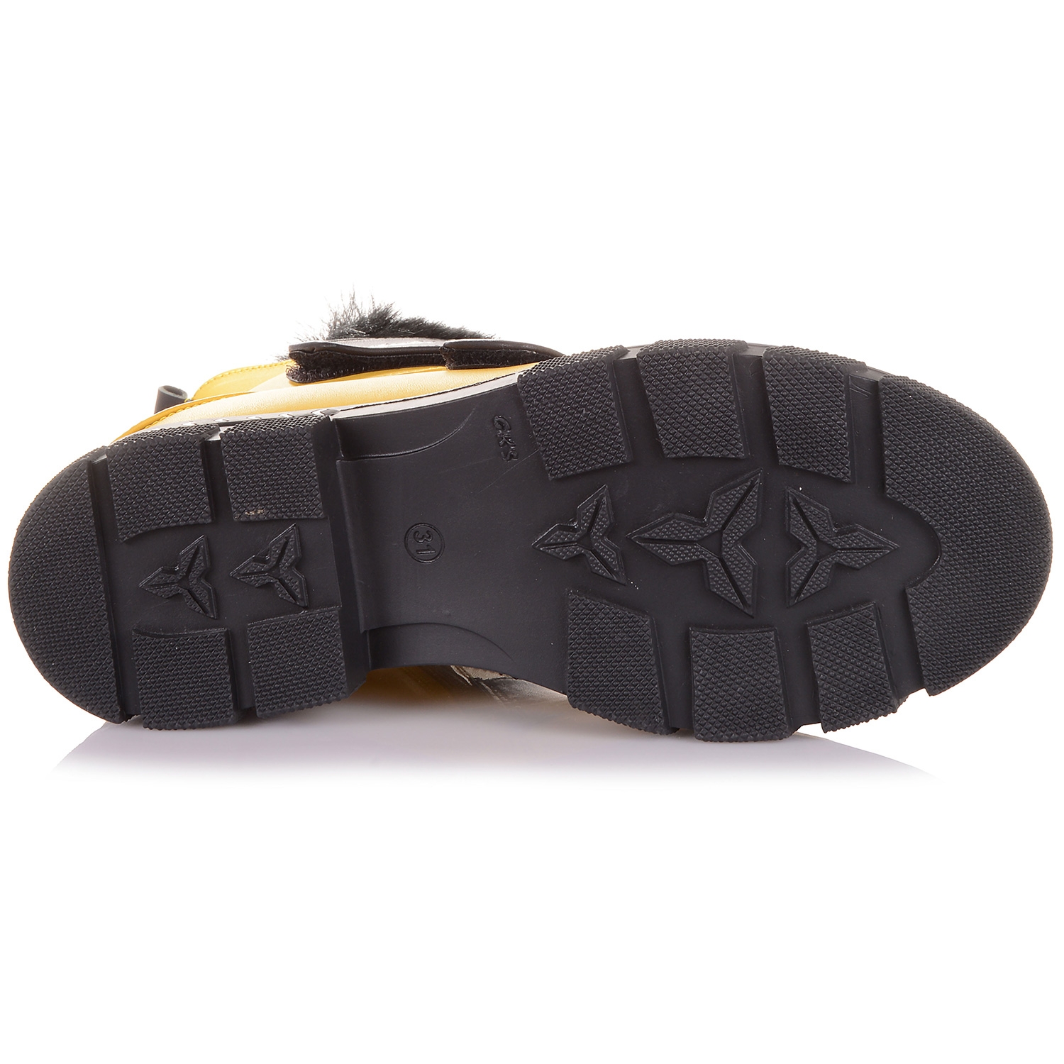 Стильне і яскраве демісезонне взуття зі шкіри жовтого кольору утеплене флисом, завдяки чому дитячим ніжкам завжди тепло, сухо і комфортно, незалежно від погоди. Міцна підошва з термоеластопласту захищає стопу від пошкоджень, амортизує крок і забезпечує хороше зчеплення з твердою поверхнею. Шкіряна устілка з супінатором підтримує зведення стопи, запобігає розвитку плоскостопості і допомагає знизити навантаження на хребет.