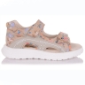 Бажаєте купити дитяче взуття з актуальним дівочим принтом та порадувати маленьку принцесу? Дуже стильні та надзвичайно гарні босоніжки для дівчинки виготовлено з натурального нубуку. Устілка та внутрішня поверхня також шкіряні, з супінатором. Задник закритий та твердий. Дитячі сандалі швидко та легко можна зафіксувати на нозі за допомоги двох липучок. Підошва класична, з термоеластопласту - міцного, не ковзаючого матеріалу.