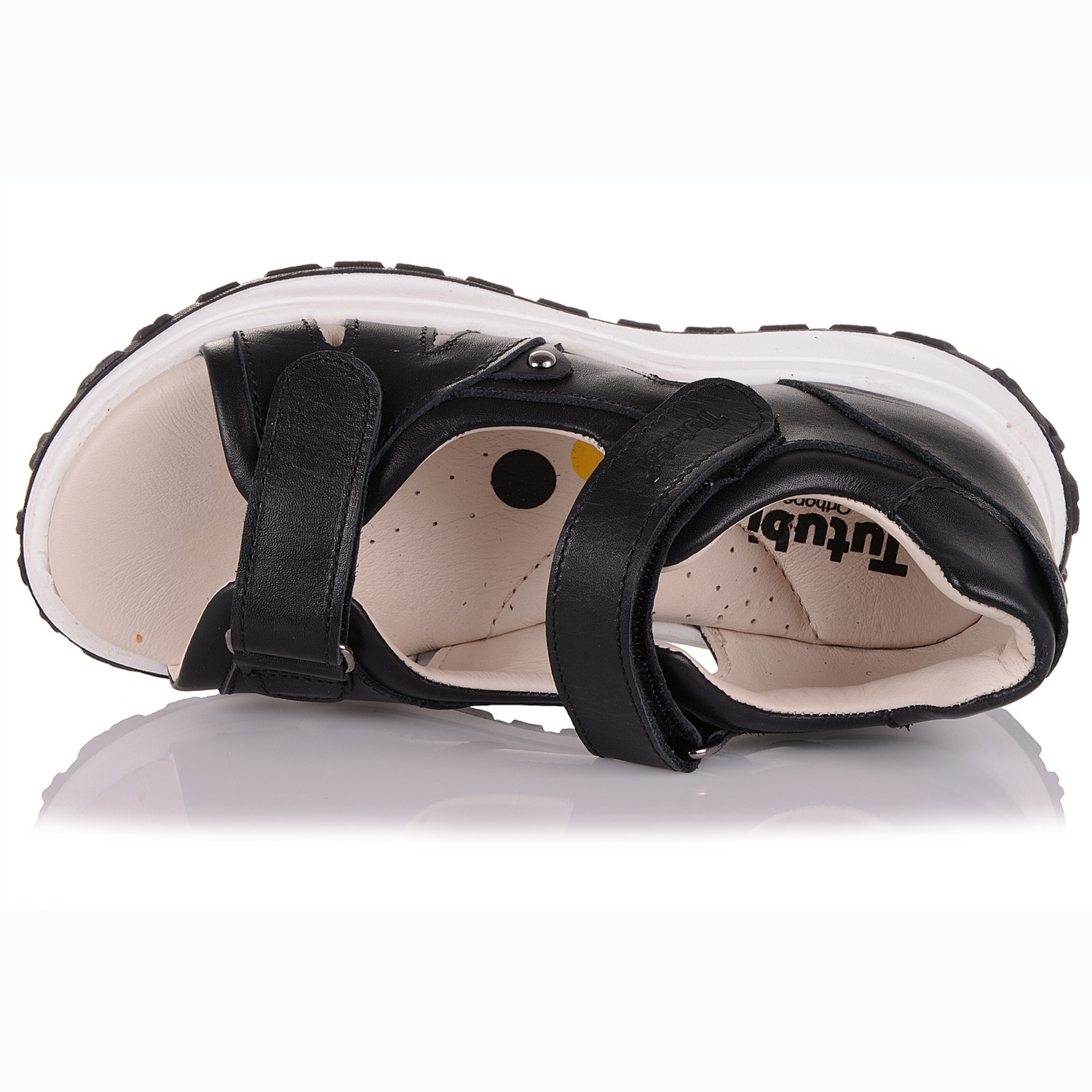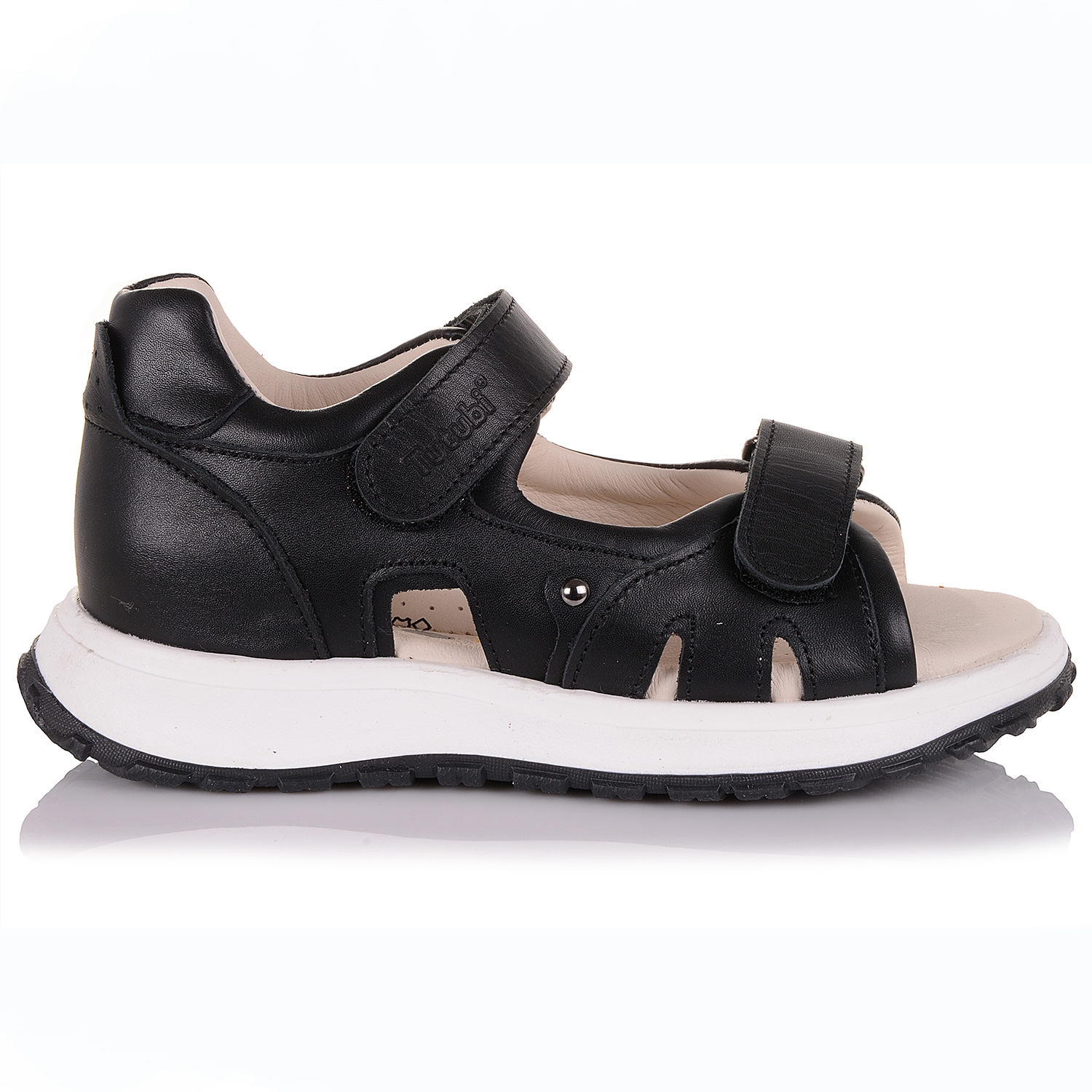 Надзвичайно лаконічні, стильні і зручні дитячі босоніжки від фірми Tutubi. Взуття для дітей зроблено з натуральної чорної шкіри. Зручна фіксація на дві липучки дозволяє підібрати взуття на ногу різної повноти і висоти зводу. Шкіряна устілка з супінатором та щільний задник забезпечують фізіологічно правильне положення ніжки. Анатомічна підошва контрасна, біла, зносостійка, з термокаучука. У такій парі взуття дитина буде себе почувати легко і невимушено.